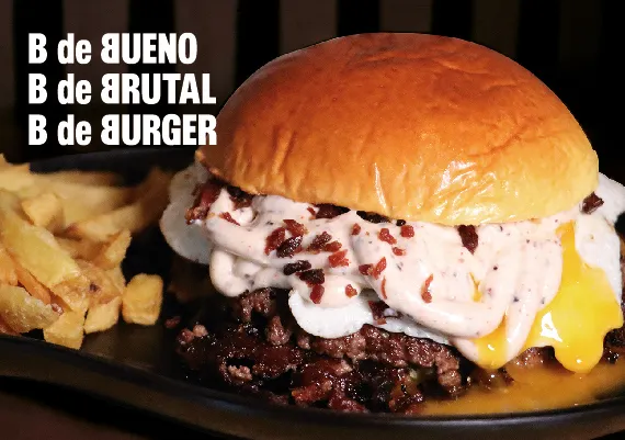 B de Bueno, porque solo lo mejor llega a tu mesa; B de Brutal, porque cada visita es intensa y memorable; y B de Burger, porque somos especialistas en lo que hacemos y nos enorgullecemos de cada smash que sale de nuestra cocina.