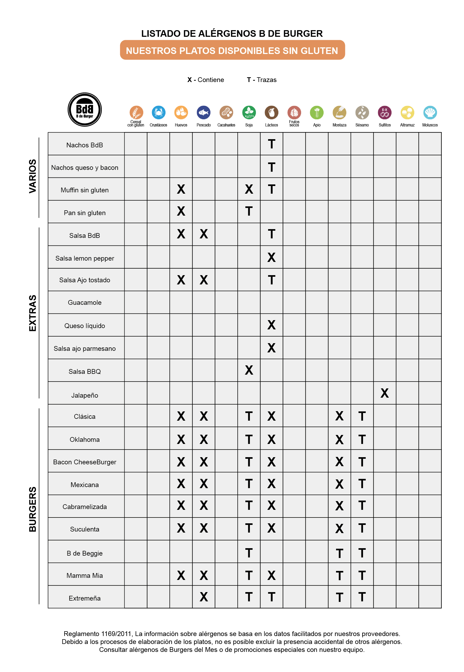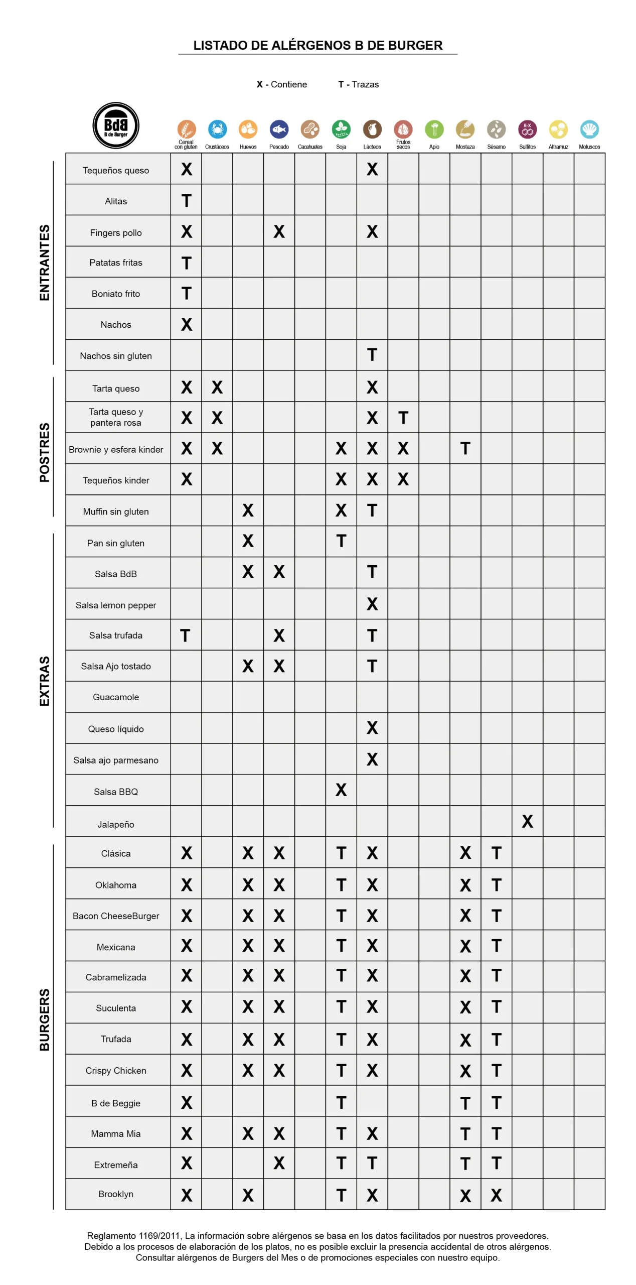 Reglamento 1169/2011, La información sobre alérgenos se basa en los datos facilitados por nuestros proveedores. Debido a los procesos de elaboración de los platos, no es posible excluir la presencia accidental de otros alérgenos.